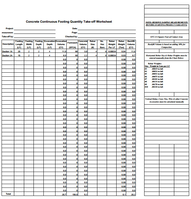 Quantity Take Off Sheets Construction Specifications Carpentry Comprehensive estimate Finishes sheet Door & Window Elevated Roof Estimating Sheets Roof Ceiling Wall Take off Wall Paint Estimating Sheet General Takeoff Sheet General Cost Estimating Paint Takeoff Sheet Plywood Takeoff Sheet Stucco Takeoff Sheet Contractors Borrowers Sheet Detailed Estimating Sheet Download itemized bid sheetNEW Contractor Proposal Bid NEW Job Estimate Form NEW Electrical Estimate NEW General Cost Estimator NEW Cost Breakdown Sheet NEW Electrical Contractor Bid NEW Engineering Construction Sheet NEW Building Materials Cost NEW Construction Budget Spreadsheet NEW Construction Cost Sheet NEW