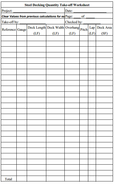 Home » Structural Estimating Sheets » Steel Decking Takeoff Worksheet
